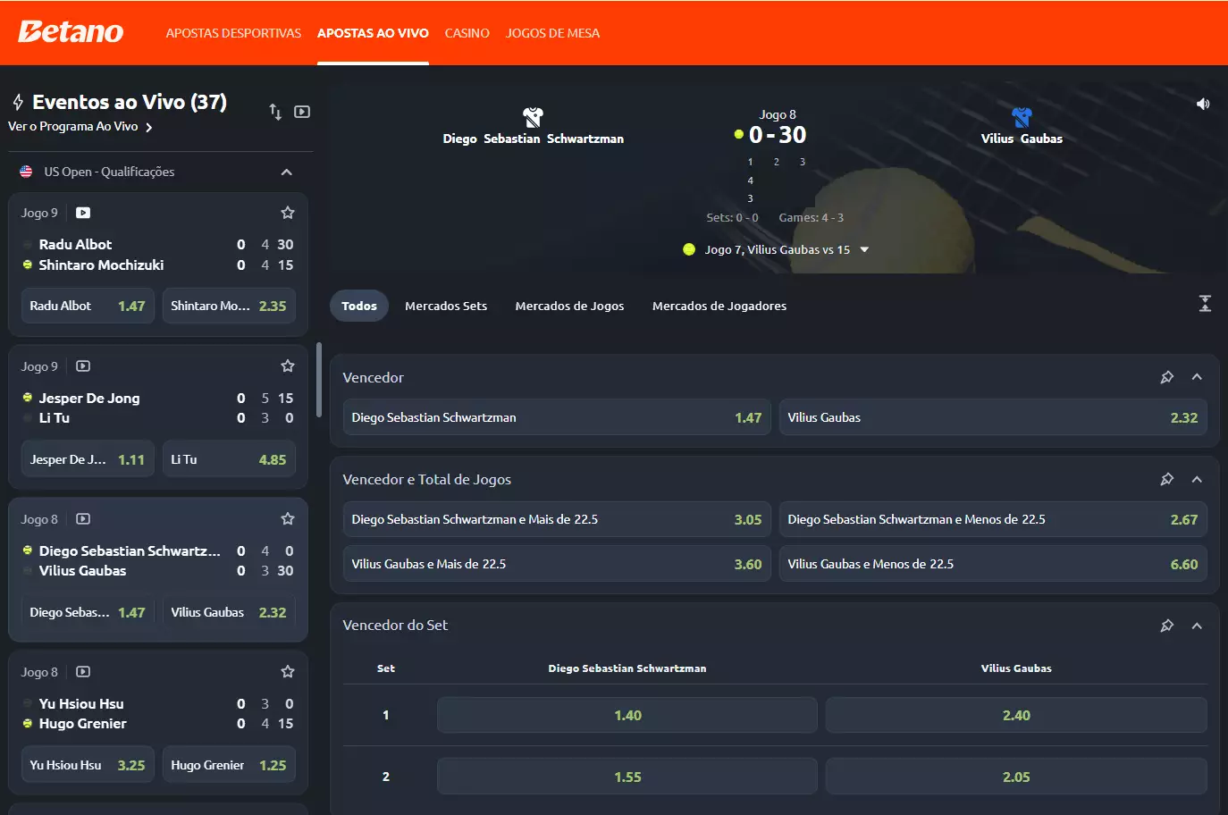 Na Betano podes apostar ao vivo e acompanhar a transmissão do evento em direto